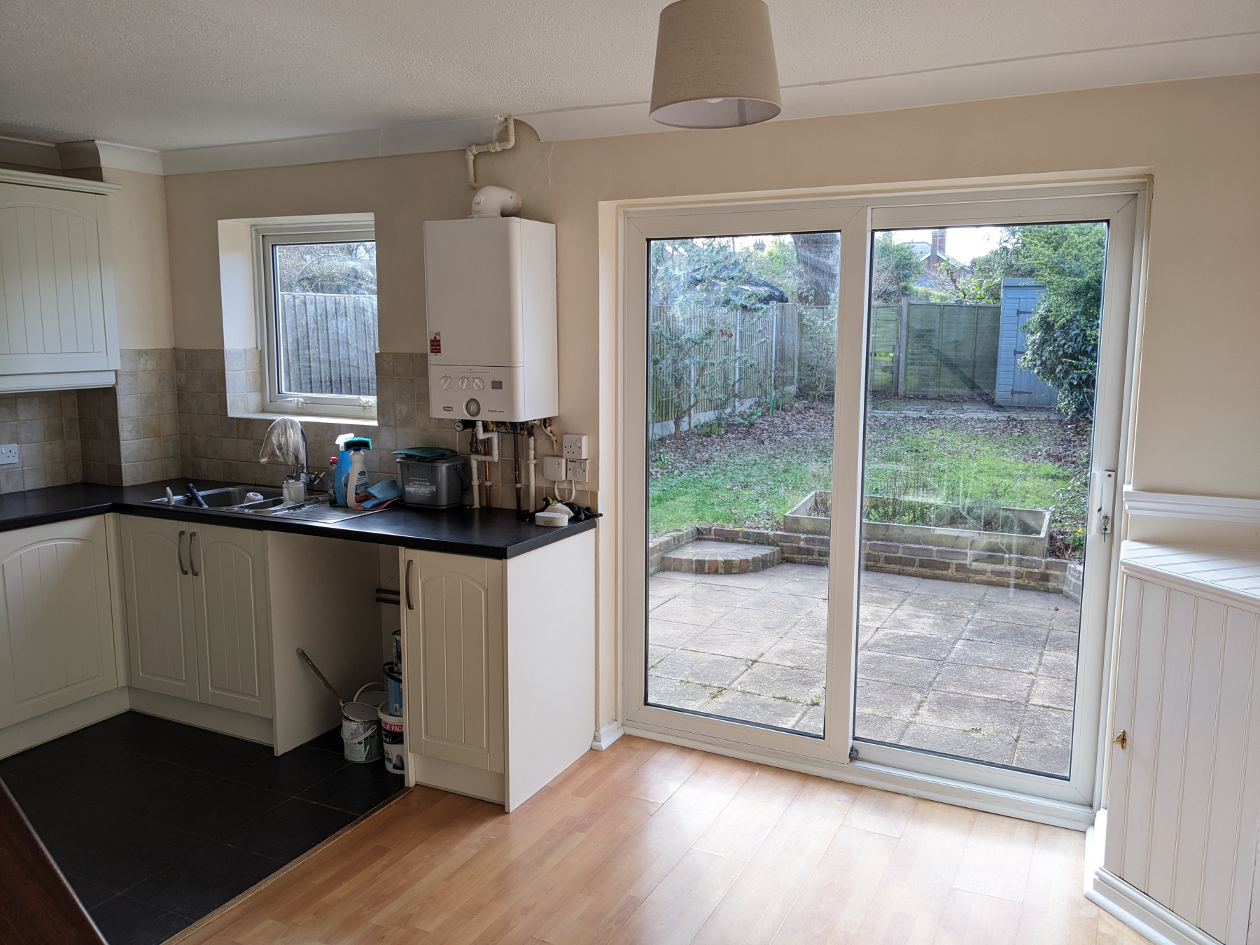 Upstairs there are 3 bedrooms and a bathroom with bath and a shower above. Gas central heating with combi boiler.